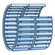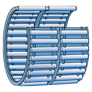 雙列滾針和保持架組件帶有與單列保持架設(shè)計(jì)相同的雙列保持架。