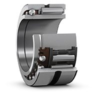 SKF 組合滾針軸承由徑向滾針軸承和推力軸承共同組成。 它們能同時承受徑向和軸向載荷。 在應(yīng)用中,當(dāng)其它類型的定位端軸承配置占用太多空間或者軸向載荷太重、轉(zhuǎn)速太高或帶簡易止推墊圈的軸承配置潤滑不足時,尤其適合使用組合滾針軸承。 SKF 提供的組合滾針軸承有以下三種基本設(shè)計:
