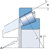 因此在運(yùn)行期間具有低的摩擦力矩。圓錐滾子軸承的軸向載荷能力隨著接觸角 α 的增大而增加。接觸角的大?。ㄍǔ?10° 至 30°)與計(jì)算系數(shù) e 有關(guān)(根據(jù)產(chǎn)品表):e 值越大,接觸角越大。